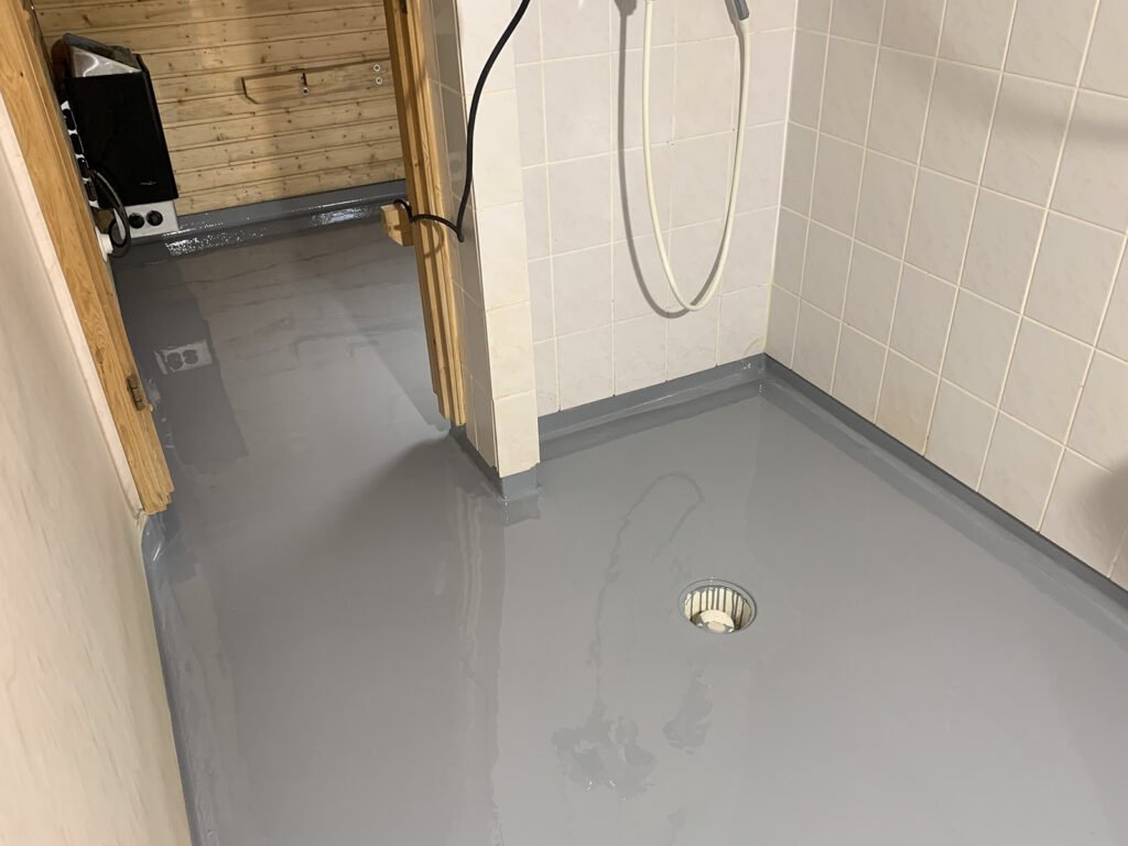 2 pav. Pavyzdžiui, danga apsaugo vonios kambario renovaciją nuo išskilimo ir griovimo.