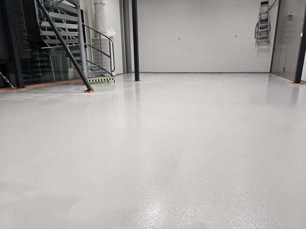 Metalo dirbtuvių 100 m² ploto ir pakrovimo rampos 160 m² ploto grindys kasdien patiria dideles apkrovas: erdvėje telpa masyvios metalo apdirbimo staklės, nešiojama įranga, krautuvai ir personalo keltuvai. Tradiciniai dažyti paviršiai anksčiau neatlaikė tokio ilgo nusidėvėjimo, todėl reikėjo daugkartinio grindų remonto.